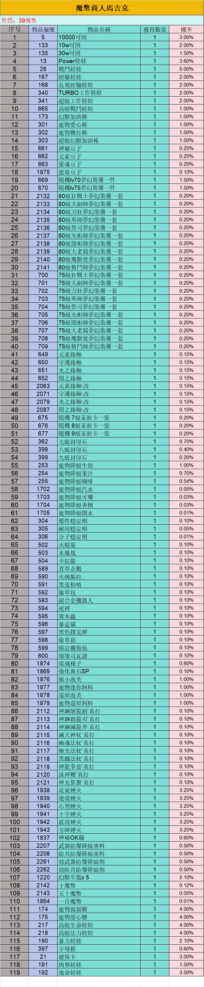 4、修改:魔幣商人馬吉克獎池(文末附圖);