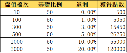 二、儲值活動、贊助比例及長期轉點活動: